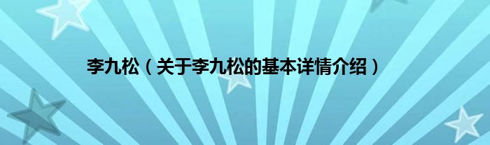 本文关于李九松的基本详情介绍就讲解完毕,希望对大家有所帮助。