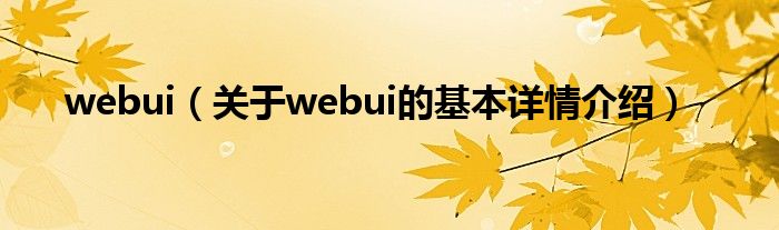 本文关于webui的基本详情介绍就讲解完毕,希望对大家有所帮助。