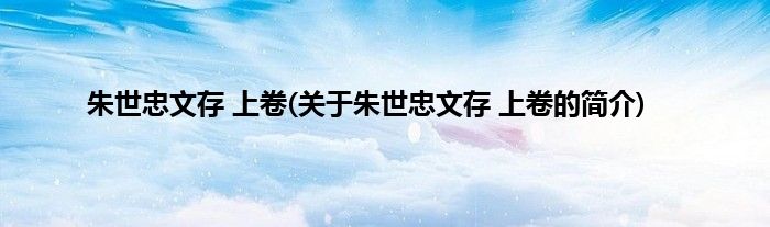 本文关于朱世忠文存 上卷的简介就讲解完毕,希望对大家有所帮助。