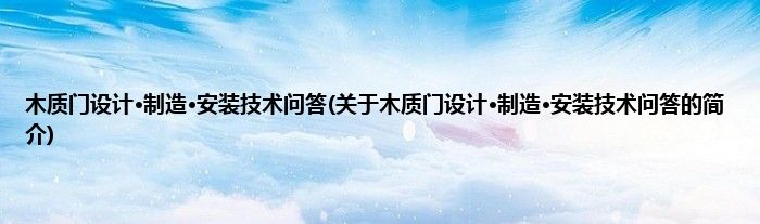 大家好,木质门设计·制造·安装技术问答,关于木质门设计·制造·安装技术问答的简介很多人还不知道,现在让我们一起来看看吧!