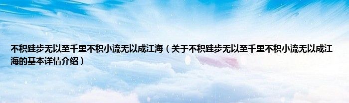 本文关于不积跬步无以至千里不积小流无以成江海的基本详情介绍就讲解完毕,希望对大家有所帮助。