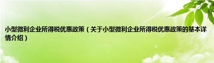 本文关于小型微利企业所得税优惠政策的基本详情介绍就讲解完毕,希望对大家有所帮助。