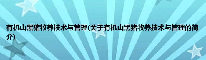 本文关于有机山黑猪牧养技术与管理的简介就讲解完毕,希望对大家有所帮助。