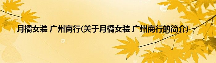 本文关于月橘女装 广州商行的简介就讲解完毕,希望对大家有所帮助。