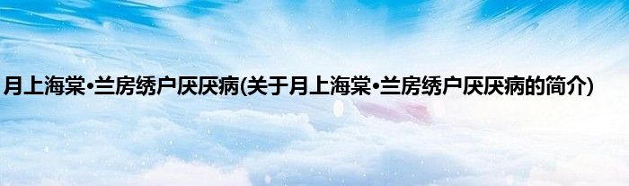 本文关于月上海棠·兰房绣户厌厌病的简介就讲解完毕,希望对大家有所帮助。