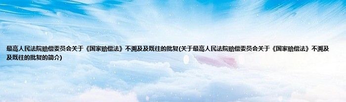 本文关于最高人民法院赔偿委员会关于《国家赔偿法》不溯及及既往的批复的简介就讲解完毕,希望对大家有所帮助。