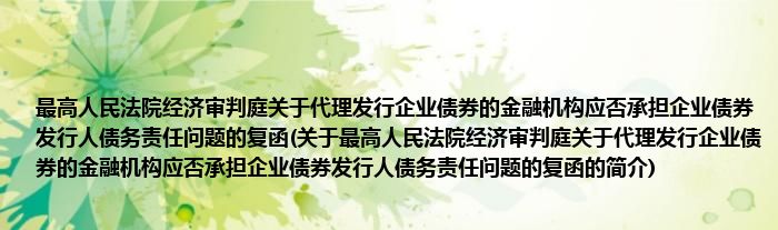 本文关于最高人民法院经济审判庭关于代理发行企业债券的金融机构应否承担企业债券发行人债务责任问题的复函的简介就讲解完毕,希望对大家有所帮助。