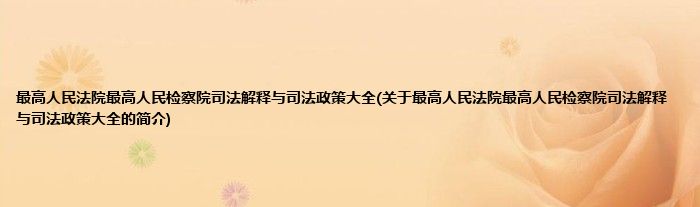 本文关于最高人民法院最高人民检察院司法解释与司法政策大全的简介就讲解完毕,希望对大家有所帮助。