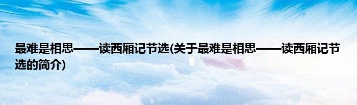 最难是相思——读西厢记节选(关于最难是相思——读西厢记节选的简介)