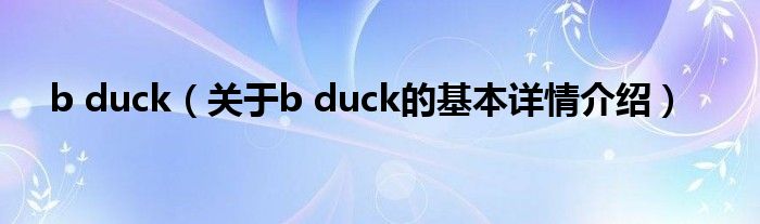 本文关于b duck的基本详情介绍就讲解完毕,希望对大家有所帮助。