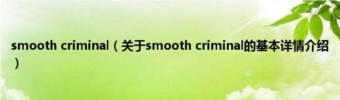 smooth criminal(关于smooth criminal的基本详情介绍)
