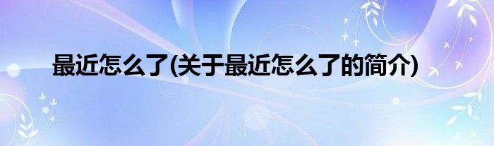 最近怎么了(关于最近怎么了的简介)