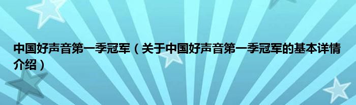 本文关于中国好声音第一季冠军的基本详情介绍就讲解完毕,希望对大家有所帮助。