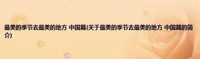 最美的季节去最美的地方中国篇(关于最美的季节去最美的地方中国篇的简介)