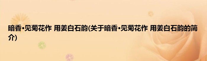 本文关于暗香·见菊花作,用姜白石韵的简介就讲解完毕,希望对大家有所帮助。