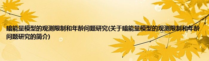 本文关于暗能量模型的观测限制和年龄问题研究的简介就讲解完毕,希望对大家有所帮助。