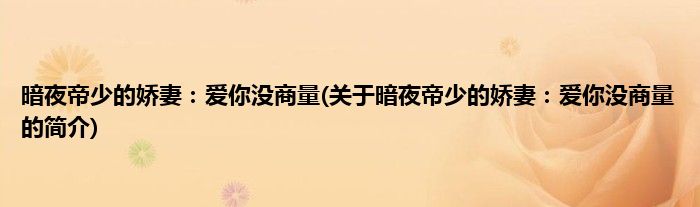 本文关于暗夜帝少的娇妻:爱你没商量的简介就讲解完毕,希望对大家有所帮助。
