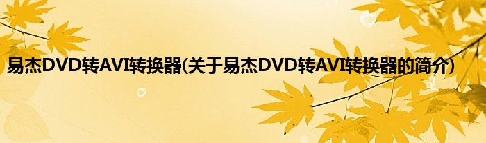 大家好,易杰DVD转AVI转换器,关于易杰DVD转AVI转换器的简介很多人还不知道,现在让我们一起来看看吧!