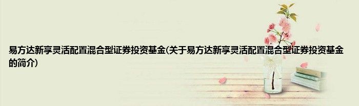 本文关于易方达新享灵活配置混合型证券投资基金的简介就讲解完毕,希望对大家有所帮助。