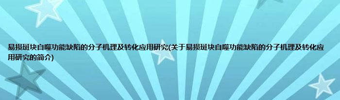 易损斑块自噬功能缺陷的分子机理及转化应用研究(关于易损斑块自噬功能缺陷的分子机理及转化应用研究的简介)