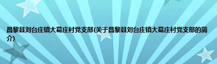本文关于昌黎县刘台庄镇大葛庄村党支部的简介就讲解完毕,希望对大家有所帮助。