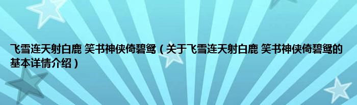 本文关于飞雪连天射白鹿 笑书神侠倚碧鸳的基本详情介绍就讲解完毕,希望对大家有所帮助。