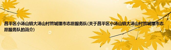 本文关于昌平区小汤山镇大汤山村管城理市志愿服务队的简介就讲解完毕,希望对大家有所帮助。