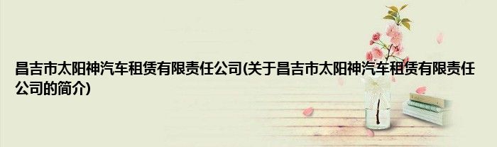 本文关于昌吉市太阳神汽车租赁有限责任公司的简介就讲解完毕,希望对大家有所帮助。