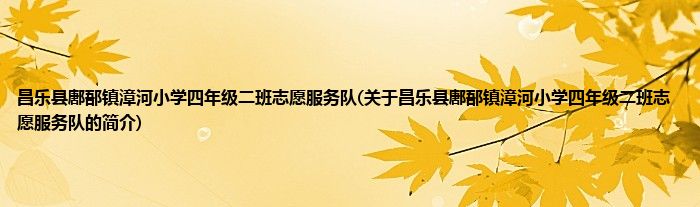 1、 昌乐县鄌郚镇漳河小学四年级二班志愿服务队是由昌乐县鄌郚镇漳河小学师生志愿服务队领导下的志愿团体。