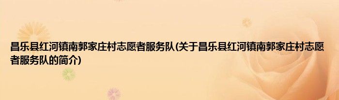 本文关于昌乐县红河镇南郭家庄村志愿者服务队的简介就讲解完毕,希望对大家有所帮助。