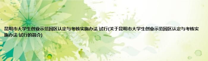 昆明市大学生创业示范园区认定与考核实施办法 试行(关于昆明市大学生创业示范园区认定与考核实施办法 试行的简介)