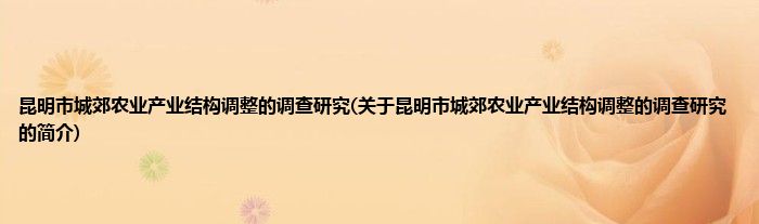 大家好,昆明市城郊农业产业结构调整的调查研究,关于昆明市城郊农业产业结构调整的调查研究的简介很多人还不知道,现在让我们一起来看看吧!