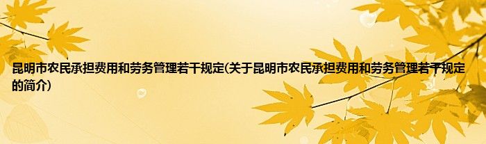 大家好,昆明市农民承担费用和劳务管理若干规定,关于昆明市农民承担费用和劳务管理若干规定的简介很多人还不知道,现在让我们一起来看看吧!
