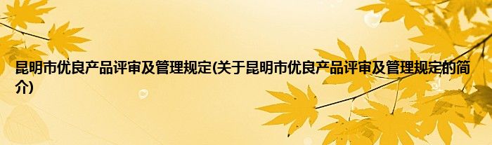本文关于昆明市优良产品评审及管理规定的简介就讲解完毕,希望对大家有所帮助。