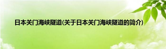 本文关于日本关门海峡隧道的简介就讲解完毕,希望对大家有所帮助。
