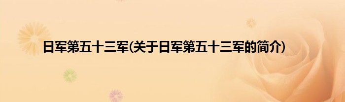 本文关于日军第五十三军的简介就讲解完毕,希望对大家有所帮助。