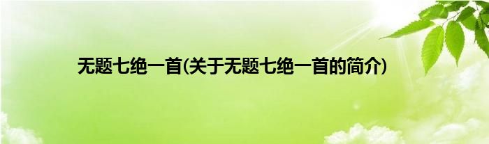 本文关于无题七绝一首的简介就讲解完毕,希望对大家有所帮助。