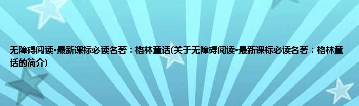 本文关于无障碍阅读·最新课标必读名著:格林童话的简介就讲解完毕,希望对大家有所帮助。