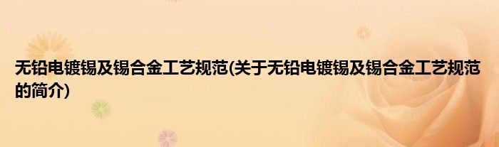 本文关于无铅电镀锡及锡合金工艺规范的简介就讲解完毕,希望对大家有所帮助。