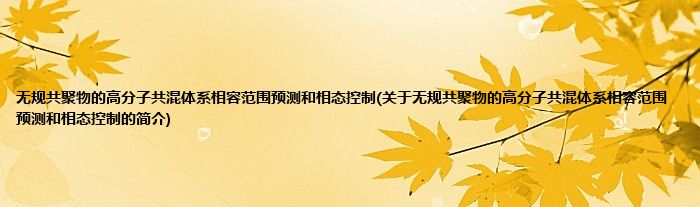 本文关于无规共聚物的高分子共混体系相容范围预测和相态控制的简介就讲解完毕,希望对大家有所帮助。