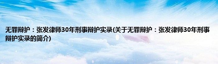 1、 《无罪辩护:张发律师30年刑事辩护实录》是2015年9月法律出版社出版的图书。