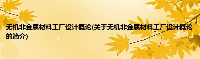 本文关于无机非金属材料工厂设计概论的简介就讲解完毕,希望对大家有所帮助。
