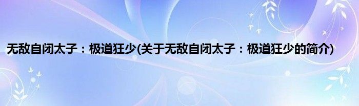 大家好,无敌自闭太子:极道狂少,关于无敌自闭太子:极道狂少的简介很多人还不知道,现在让我们一起来看看吧!