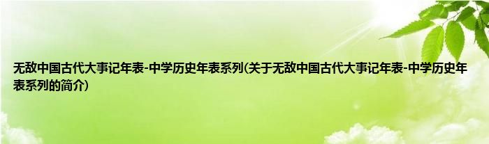 本文关于无敌中国古代大事记年表-中学历史年表系列的简介就讲解完毕,希望对大家有所帮助。