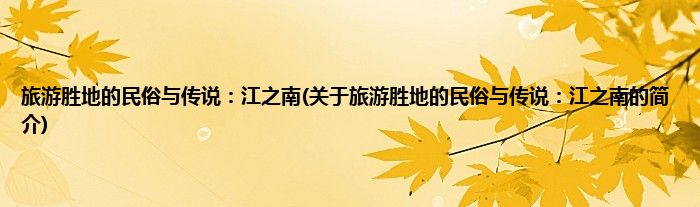 本文关于旅游胜地的民俗与传说:江之南的简介就讲解完毕,希望对大家有所帮助。