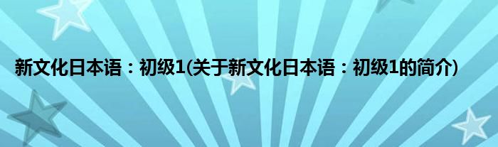 本文关于新文化日本语:初级1的简介就讲解完毕,希望对大家有所帮助。
