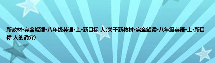 大家好,新教材·完全解读·八年级英语·上·新目标 人,关于新教材·完全解读·八年级英语·上·新目标 人的简介很多人还不知道,现在让我们一起来看看吧!