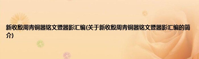 本文关于新收殷周青铜器铭文暨器影汇编的简介就讲解完毕,希望对大家有所帮助。