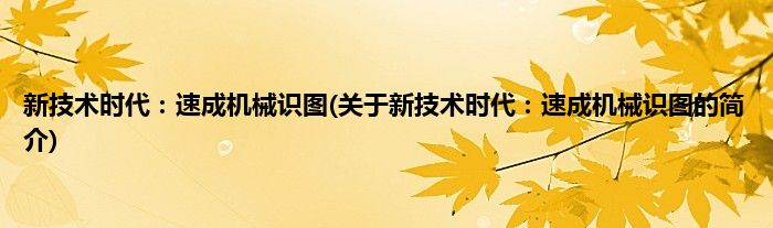 本文关于新技术时代:速成机械识图的简介就讲解完毕,希望对大家有所帮助。