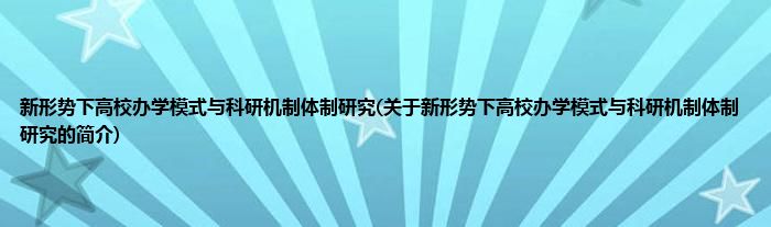 新形势下高校办学模式与科研机制体制研究(关于新形势下高校办学模式与科研机制体制研究的简介)